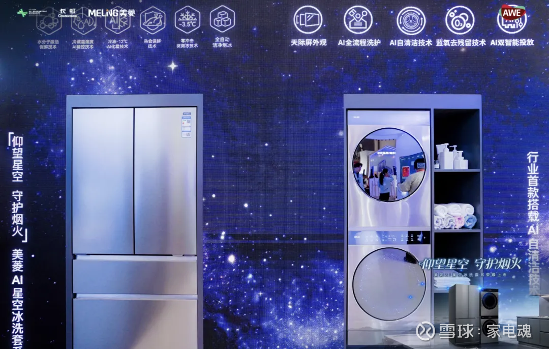 实际上,有前瞻性的企业已开始AI的落地。在2026年中国家电及消费电子博览会(AWE)上,美菱AI星空系列M鲜生606F冰箱和美菱AI星空系列蓝氧烘护套,以硬核科技重新定义高端冰、洗标准,彰显美菱深耕冰、洗领域43年的技术创新实力。