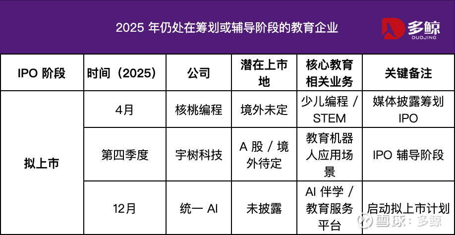 如果把时间轴拉回到 2025 年,会发现教育 IPO 并未消失,但已经发生了深刻变化。真正完成上市的公司数量有限,递交申请的企业明显增多,而更多教育与教育科技公司,则停留在筹备和观望阶段。