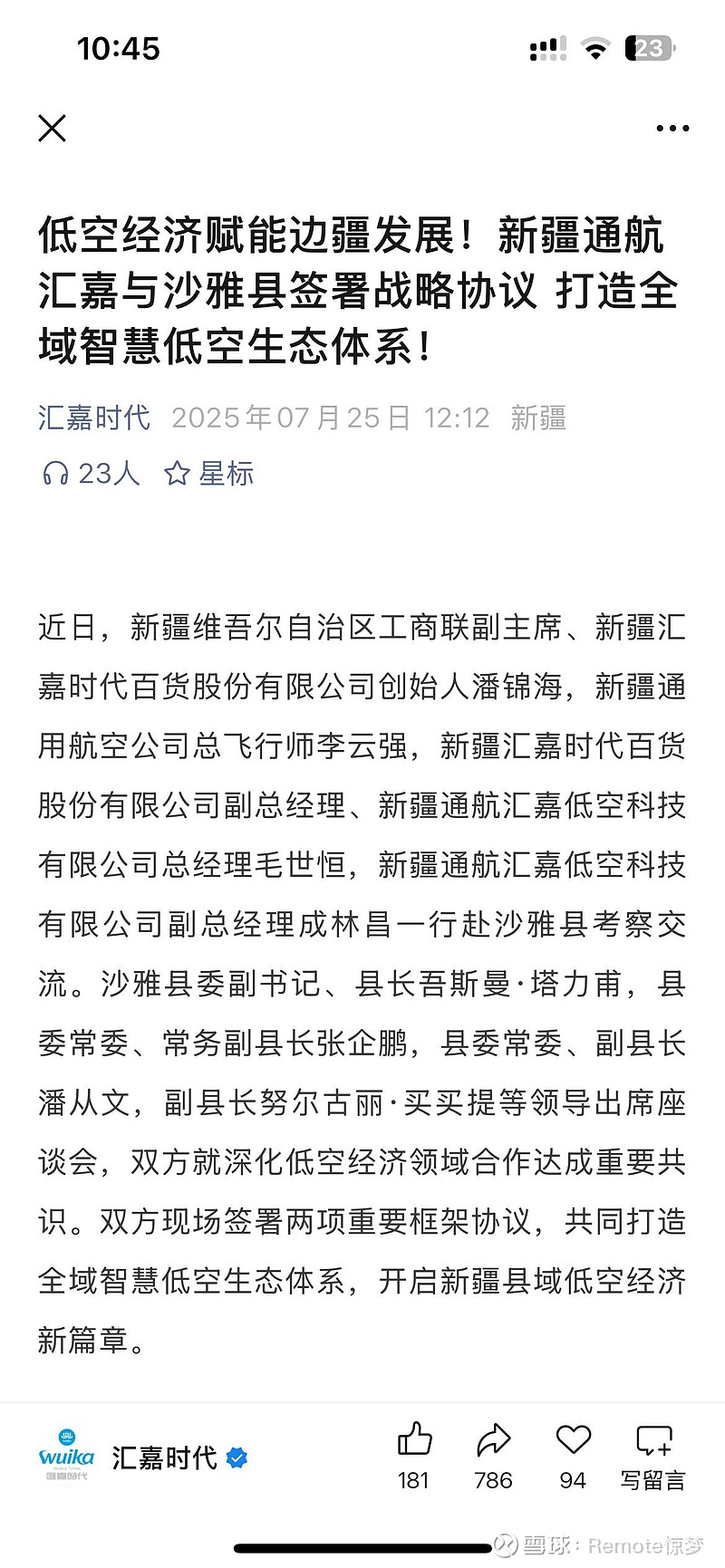 $汇嘉时代(SH603101)$ $国光连锁(SH605188)$ $永辉超市(SH601933)$ #消费# #低空经济# @今日话题 @雪球创作者中心