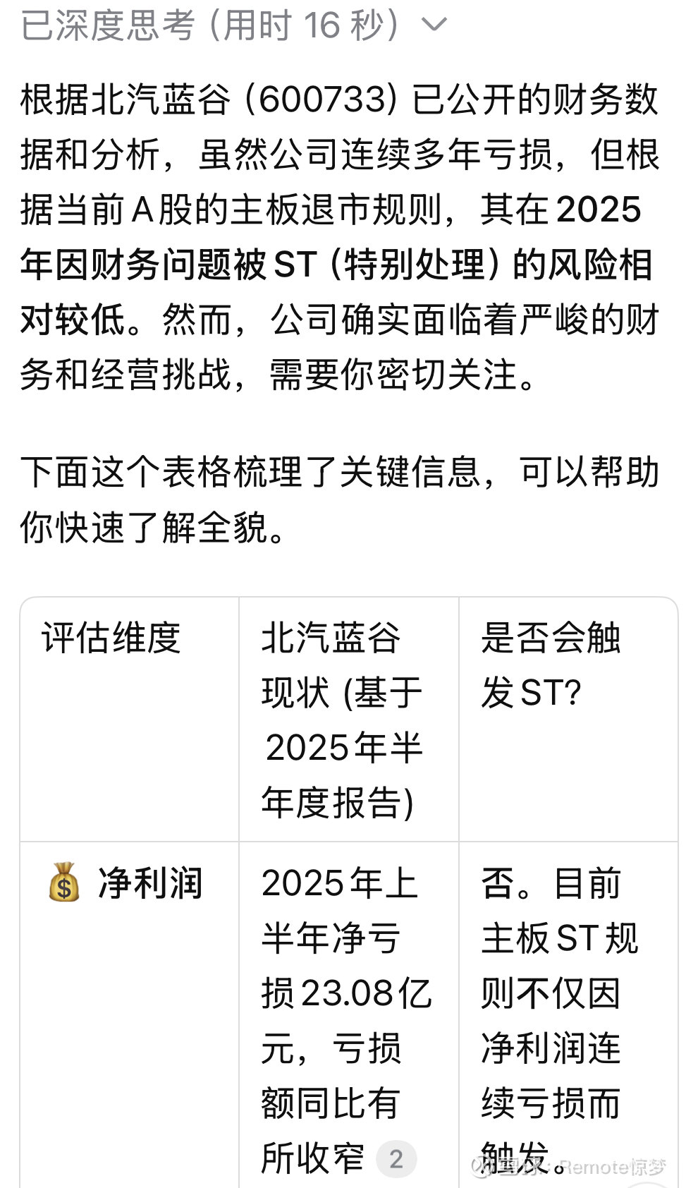 唯一的风险就是退市风险,不然这个位置这个基本盘,也跌不到哪里去。查了下Deepseek,利润亏损暂时不会导致ST,毕竟营收有所改善,但“净资产为负”这个红线非常重要,需要持续跟踪年报。