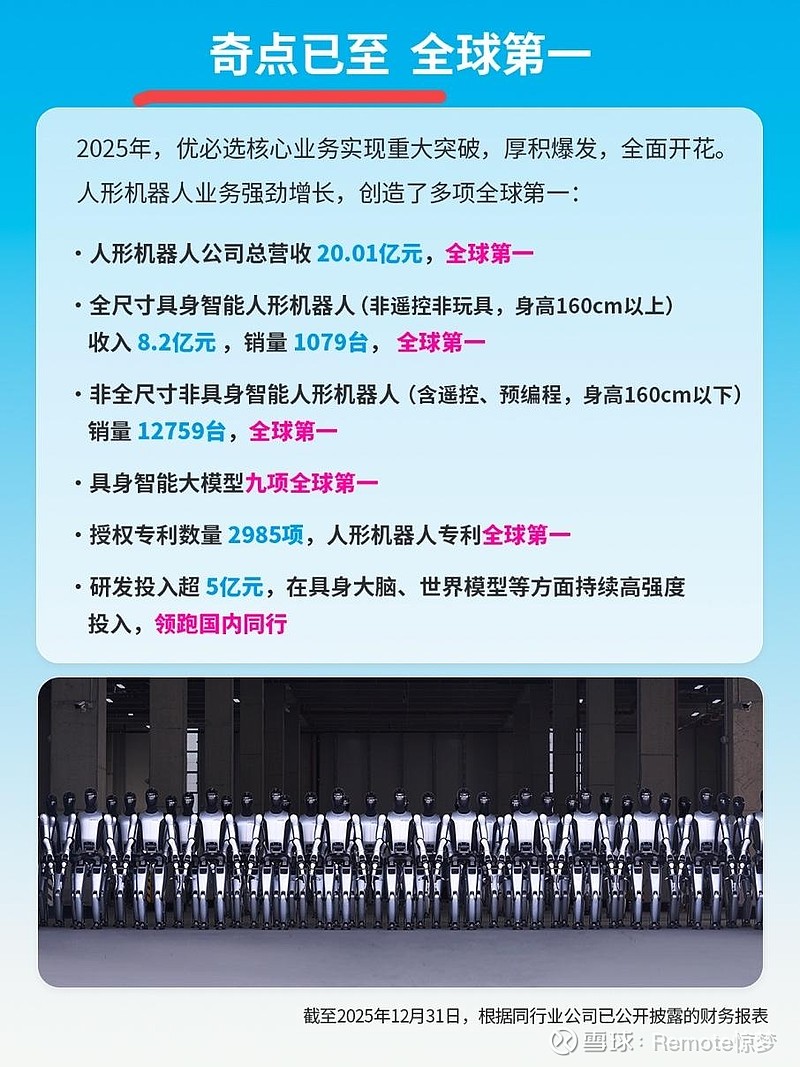 周剑采访视频反复强调过目标是尽快(听意思就是最近两年内)做到万台级,这份财报很大程度上证实了周剑没吹牛。而一周前宇树科技的IPO申报书更加衬托出优必选在研发投入、专利数量、技术储备上的规模式领先。