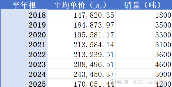 从上表中可以很清楚地看到,高温合金的平均销售单价持续下滑,相较2024年半年报下滑32%,2025年二季度的单价甚至已经跌到了2018年的单价水平。