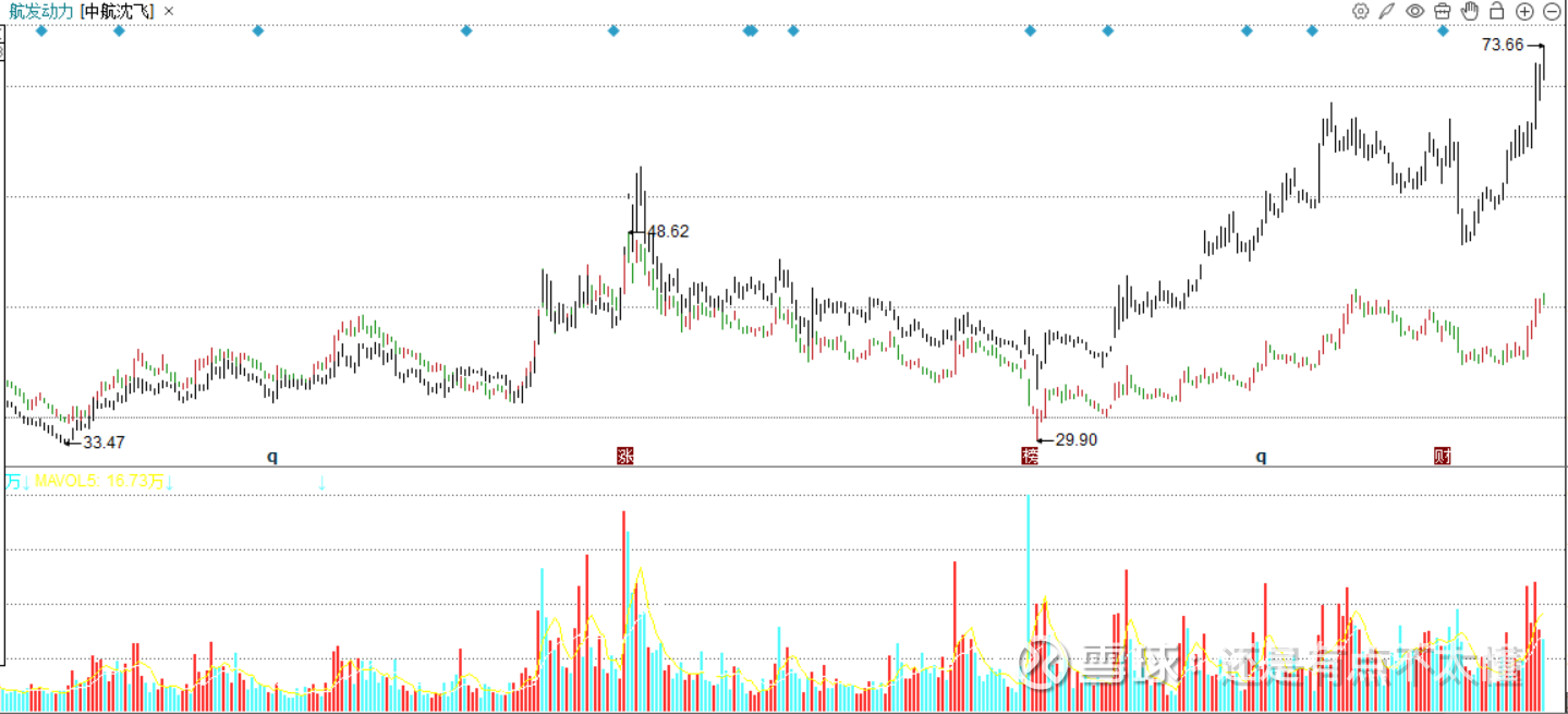 (从今年五月份开始,航发动力就被中航沈飞拉开了差距,而后者已经创历史新高)