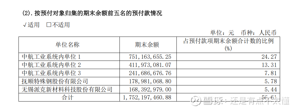 (抚钢位列航发动力第四大预付款供应商,可见其地位)
