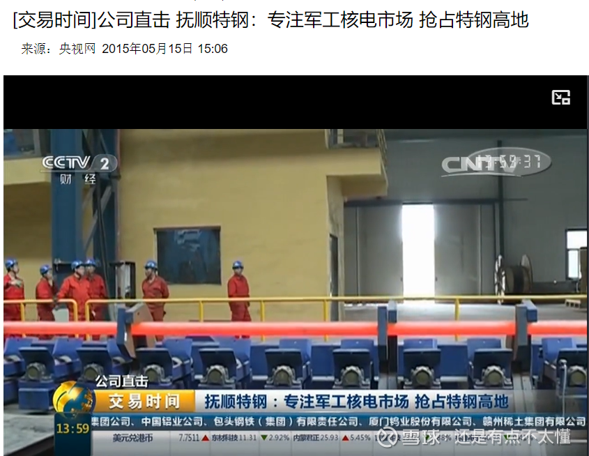 2015年,CCTV2财经频道走进抚顺特钢,重点提到了抚钢在核电领域的布局。