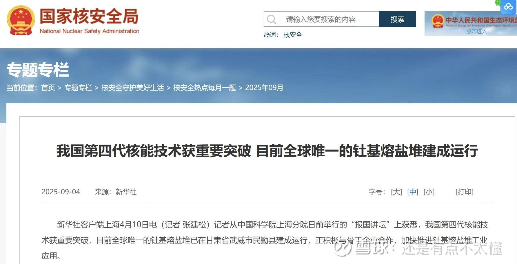 今年9月,全球唯一的钍基熔盐堆在甘肃武威建成运行,标志着中国核电事业的快速发展。