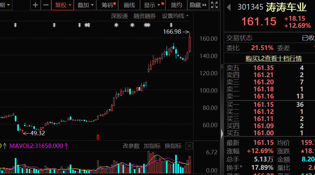 涛涛车业累计涨幅151.29%,遥遥领先。该股7月25日盘中一度涨超16%,股价创历史新高。公司发布的业绩预告显示,预计2025年上半年净利润为3.1亿元至3.6亿元,同比增长70.34%至97.81%。