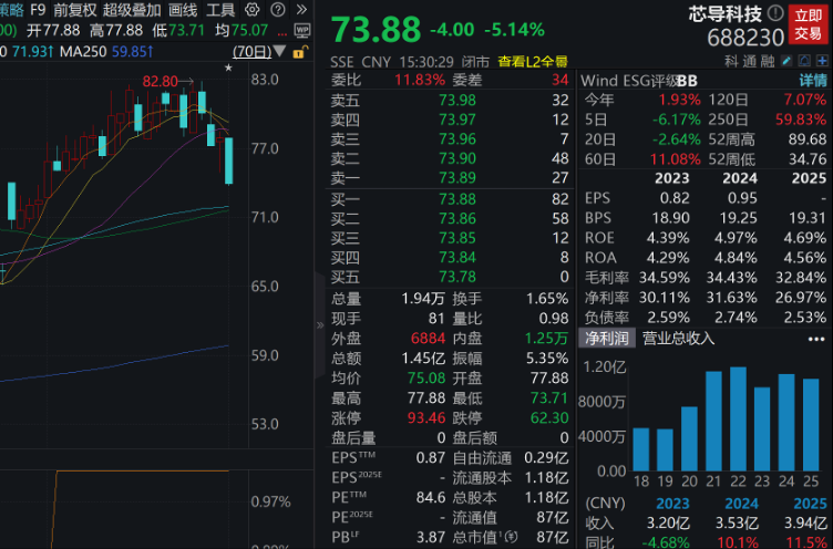 2月2日晚间,芯导科技发布沪市首份2025年年度报告。根据年报,公司2025年实现营业收入3.94亿元,同比增长11.52%;归母净利润1.06亿元,同比下降4.91%;扣非净利润6888.64万元,同比增长17.54%。
