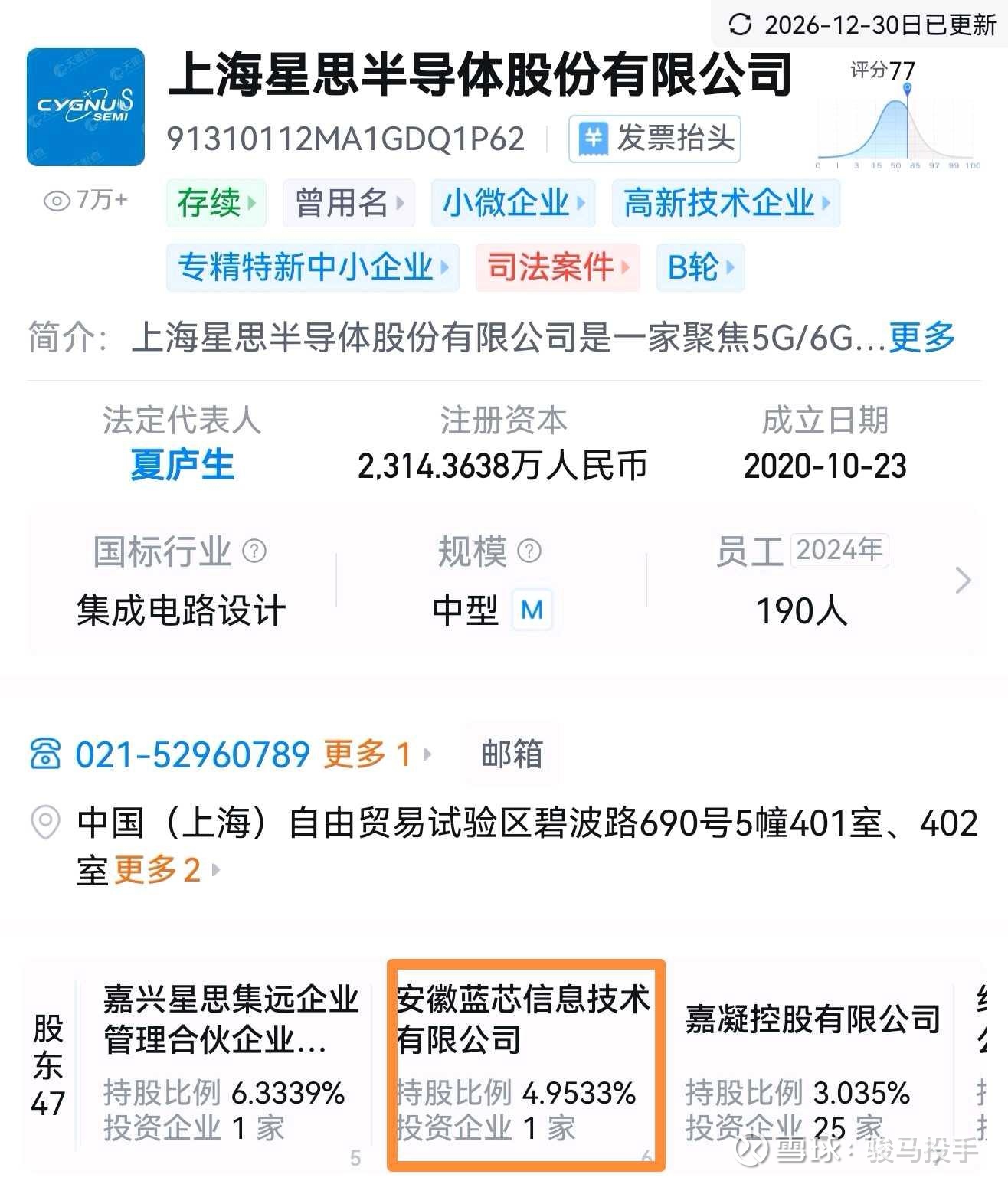 蓝盾光电通过全资子公司持有星思半导体核心股权(4.95%+,为重要股东)。