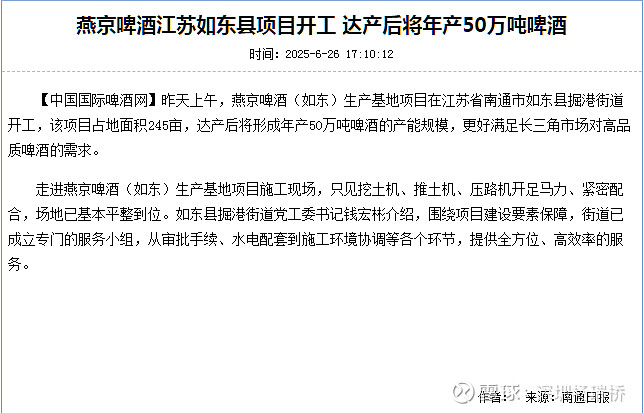 燕京最近在江苏如东建厂,挺好的,南方有惠泉和漓泉,长三角也在建厂,打江山!