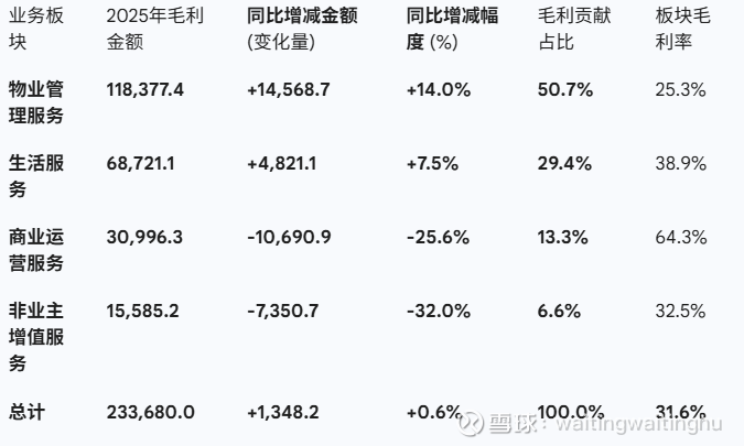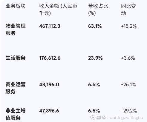 公司主要以物管+生活服务为主,物管甚至还有外拓第三方拿地,增速较为可观,这两年商用租金确实也在下滑,而非业主增值服务随着母公司拿地减少应该会逐步计提,好在这部分占比已极低(约6.5%),风险基本出清。