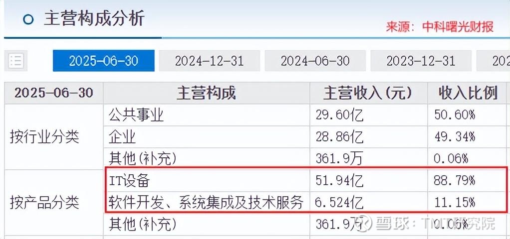 2025年上半年,浪潮信息的服务器产品营收占比高达93.88%;而同期,中科曙光的IT设备营收为51.94亿元,营收占比为88.79%,核心产品包括服务器、存储产品等。