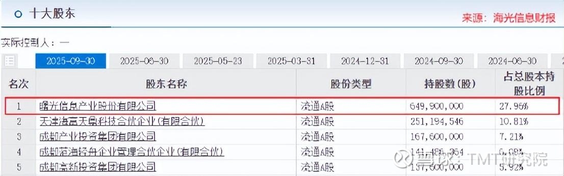 这样一来,中科曙光作为海光信息的第一大股东,截至2025年三季度末对其持股比例高达27.96%,自然随之一荣俱荣。