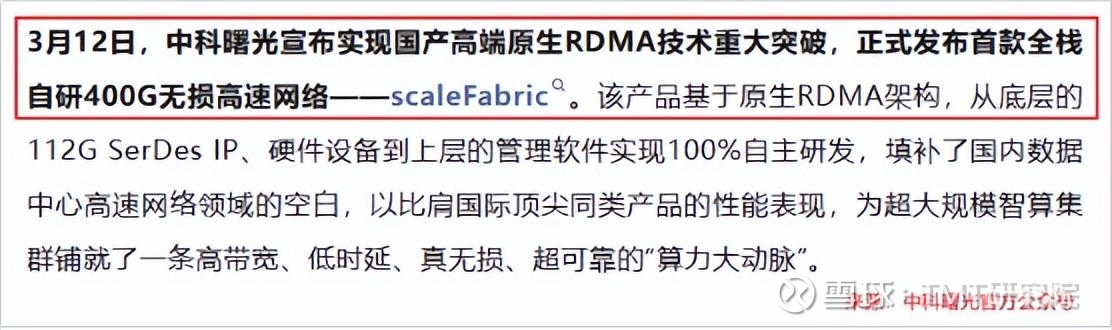 此次,中科曙光的相关产品技术已经实现里程碑式突破,甚至在部分指标上超过了英伟达NDR。