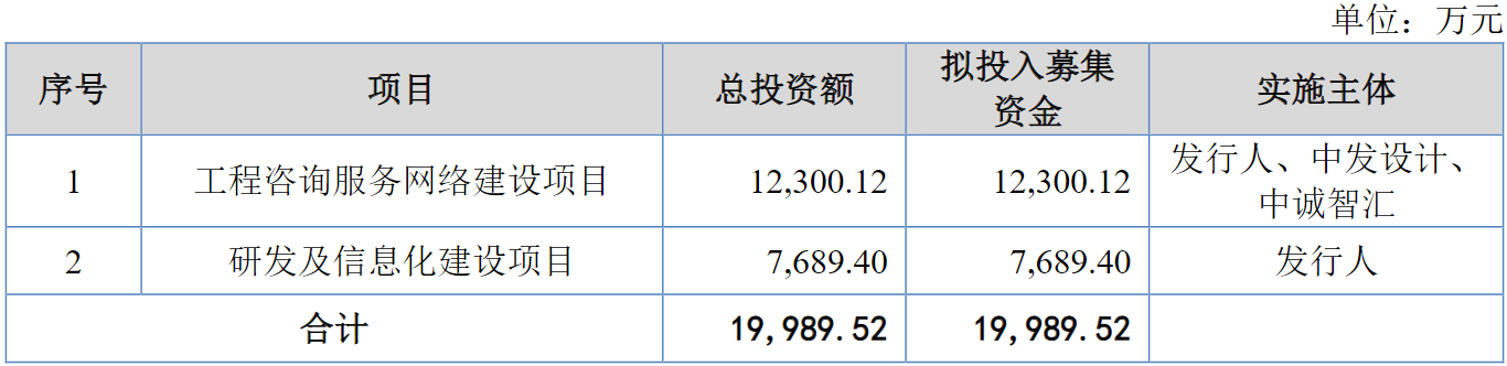 本次IPO拟募集资金2.00亿元用于工程咨询服务网络建设项目和研发及信息化建设项目。