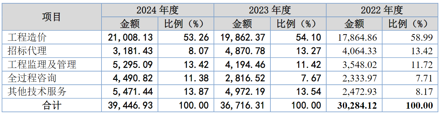 中诚咨询是工程咨询服务业内较早开展全过程咨询业务的企业。公司通过建立健全的全过程咨询服务体系,充分发挥自身专业化、集成化优势,实现多专业、多工种的协同配合,切实提高工程项目的质量、保障工程项目的安全,并帮助建设单位提高建设效率、节约建设资金。根据公司招股说明书,公司全过程咨询收入占比逐年上升,2024年全过程咨询收入占比达11.38%。