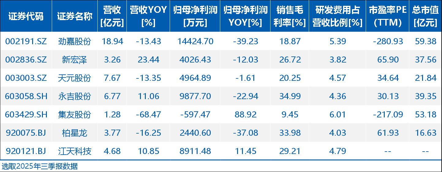 同行业上市公司方面,选取劲嘉股份(002191)、新宏泽(002836)、天元股份(003003)、永吉股份(603058)、集友股份(603429)、柏星龙(920075)为可比公司。