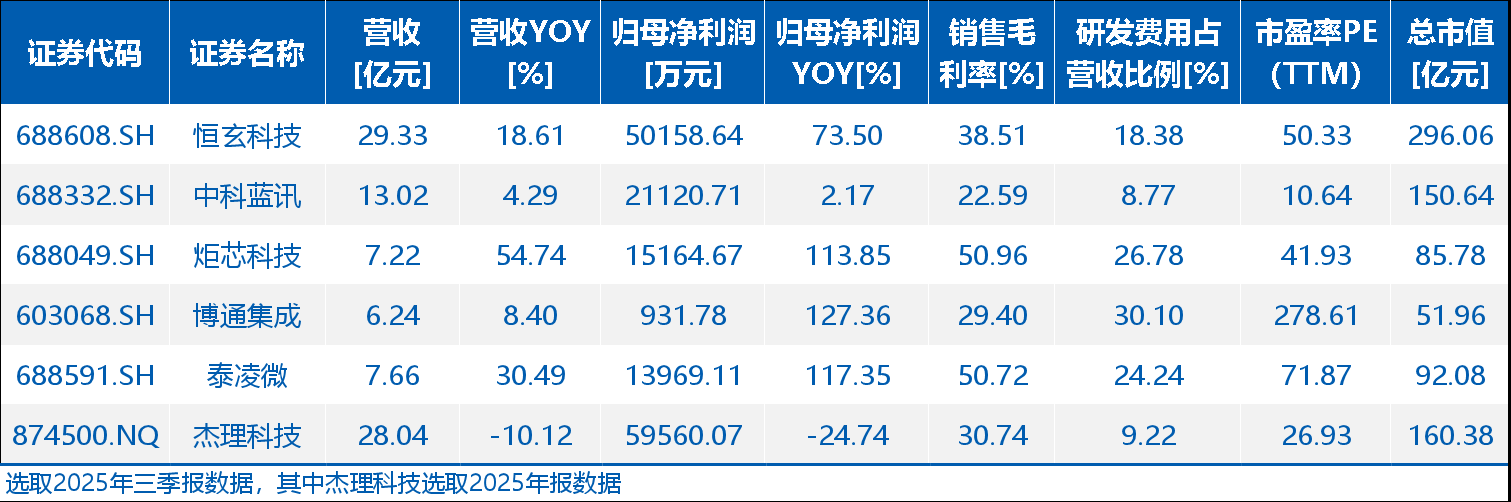 同行业上市公司方面,选取恒玄科技(688608)、中科蓝讯(688332)、炬芯科技(688049)、博通集成(603068)、泰凌微(688591)为可比公司。