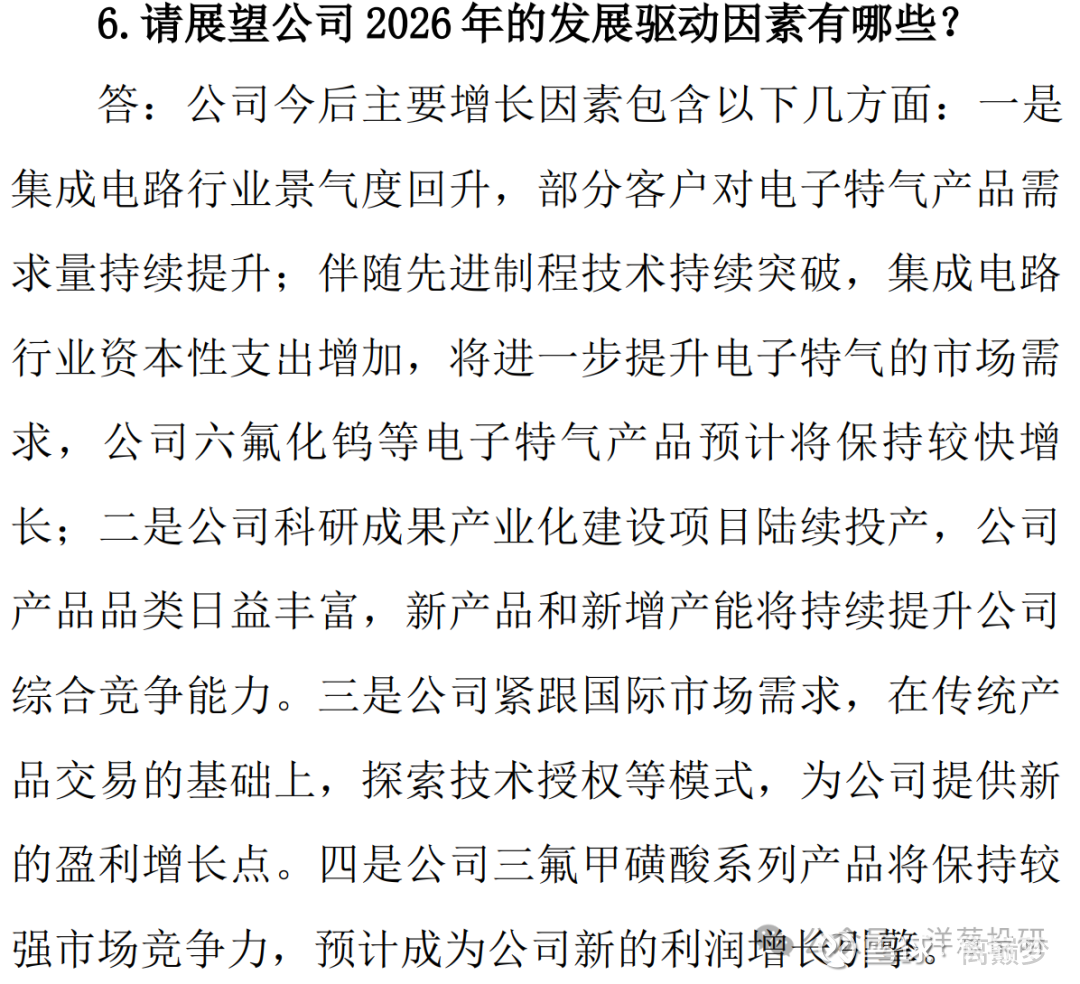 核心原因和三氟化氮一样,是南大光电、昊华科技等竞争对手新项目投产。2025年开始需求逐步增加。