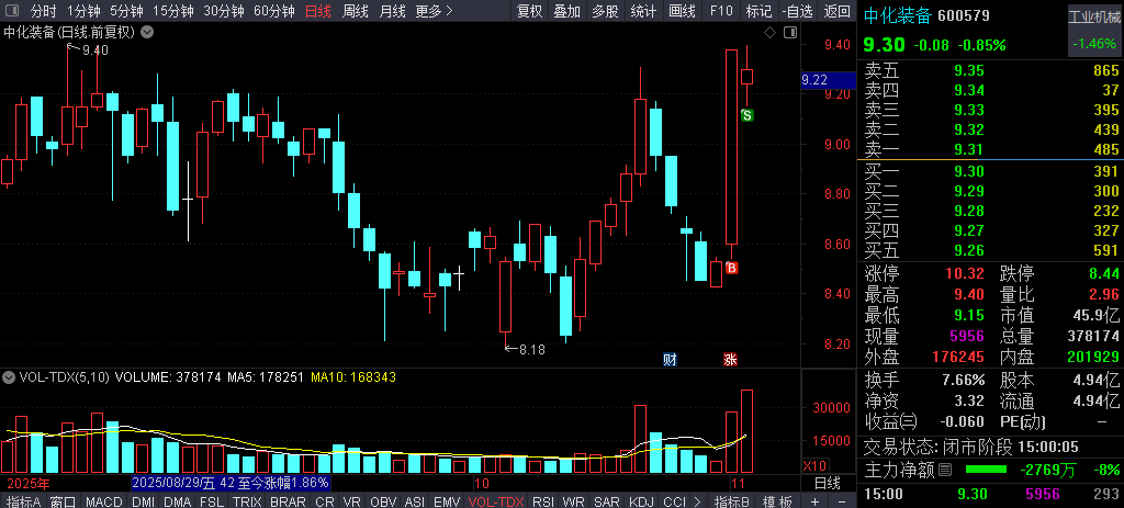 中化装备 600579 主力第一波拉升时,第一时间追了进去,下午开盘后主力瞬间拉涨停板!成功捉涨停。昨天开盘小幅低开,而没有大幅高开或小幅高开,必须走人,不能留恋,所以,开盘就卖了!吃了口小肉,这就是我为什么从不打板,打板的话能有肉吃吗?