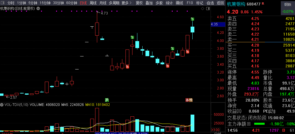 三捉 杭萧钢构(26029)