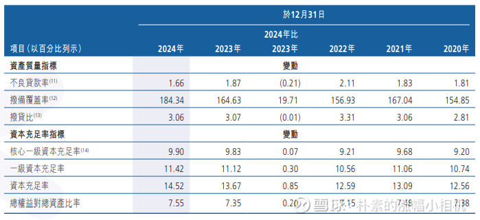 资产质量方面,2022年至2024年,该行不良贷款率从2.11%下降至1.66%;拨备覆盖率有所提升,去年升至184.34%。
