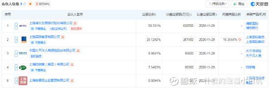 股权架构方面,天眼查显示,星启恒泰的大股东为浦发银行,出资62.07亿元,持股比例58.33%;上海国际集团出资26.74亿元,持股25.13%;太保寿险出资9.56亿元,持股8.98%;陆家嘴集团出资8.03亿元,持股约7.55%;上海瑞景恒企业管理有限公司持有0.0094%股份。