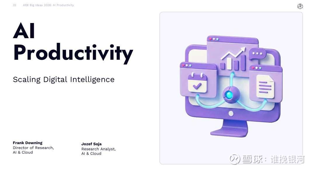 木头姐在报告中明确指出,2026年AI将从消费端向企业级深度渗透,这是AI产业发展的关键转折点 。消费端AI的天花板清晰可见,而企业级AI的市场空间无限——AI可以赋能制造、金融、医疗、物流、教育等所有产业,推动产业效率的大幅提升。以医疗产业为例,AI+精准医疗可以将癌症早筛率提升至95%,将新药研发周期缩短一半;以制造产业为例,AI+工业机器人可以实现生产线的全自动化,将生产效率提升30%以上;以物流产业为例,AI+自动驾驶卡车可以将物流成本降低50%以上,解决物流行业的人力短缺问题。