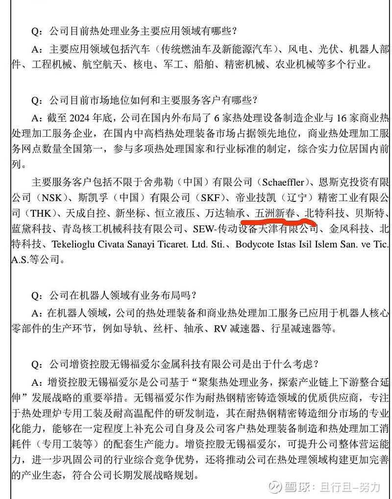 金财互联(002530)热处理业务的核心客户按行业与合作类型整理如下,覆盖汽车、机器人、工程机械、风电等核心赛道: