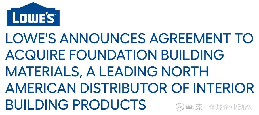 美国家居建材零售巨头劳氏(Lowe's)宣布以88亿美元收购Foundation Building Materials(FBM),创下公司史上最大并购纪录。FBM在美国和加拿大运营着370多个网点,为约4万家专业客户提供石膏板、隔热材料、金属框架、吊顶系统、商用门、五金件及配套建材等产品。2024年,该公司实现营收65亿美元。