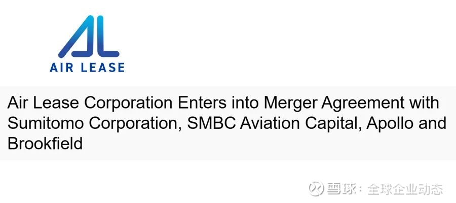 美国航空租赁公司Air Lease将以74亿美元的股权总值售予住友集团、阿波罗资管、布鲁克菲尔德资管等一众投资公司组成的财团。含债务在内的企业总值约282亿美元。Air Lease公司目前拥有空客与波音飞机共789架,客户遍布全球,包括中国东航、中国南航、英国国航、达美航空等多家大型航空公司。被收购后的Air Lease将更名为Sumisho Air Lease,并与三井住友集团旗下的SMBC航空资产公司合并,营业规模将紧追行业龙头——总部位于爱尔兰的AerCap。