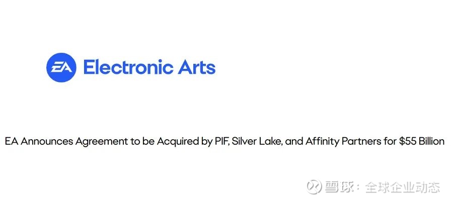 电玩厂商艺电(Electronic Arts)将被一个由库什纳(Jared Kushner)与银湖(Silver Lake)组建并获得沙特支持的财团私有化,交易金额550亿美元,跻身史上最大规模的杠杆收购之一。这笔交易堪称史上最大规模的私有化交易之一,超过2007年对得州公用事业集团TXU的450亿美元收购。总部位于硅谷的EA以体育类游戏著称——尤其是足球和美式橄榄球。此外,它还拥The Sims系列和射击游戏Battlefield。