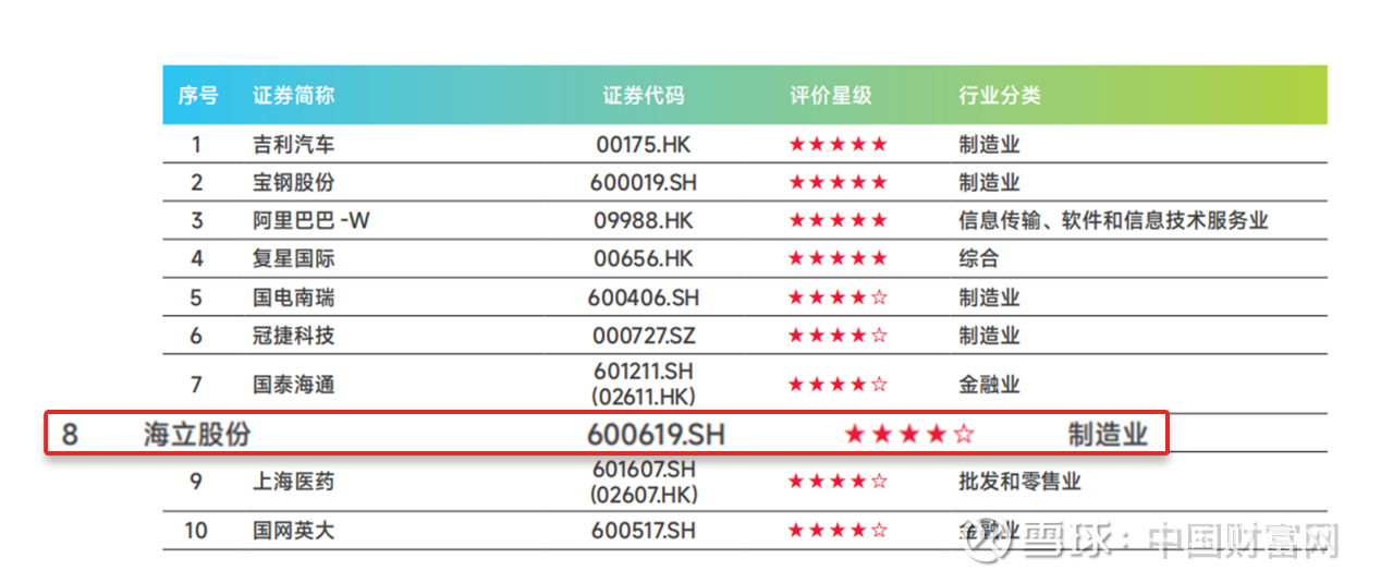 近日,《长三角ESG行动报告(2025)》在第二届ESG中国・长三角企业社会责任发布会上正式发布。海立股份(600619)凭借在环境、社会及治理(ESG)与可持续发展领域的卓越表现入选“中国ESG上市公司长三角先锋100(2025)”,位列榜单第八名,并作为发起单位参与打造“中国供应商ESG评级平台”。