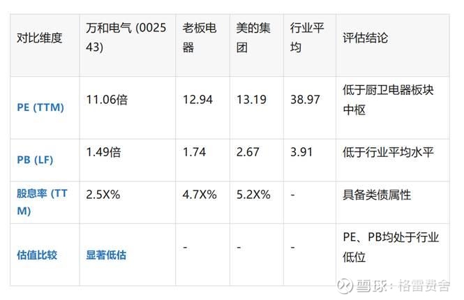 最后,估值具备修复空间,基本面支撑强劲。当前万和市盈率处于行业低位,远低于行业平均水平与头部企业,随着战略落地、业绩修复,估值向合理水平回归是必然趋势。