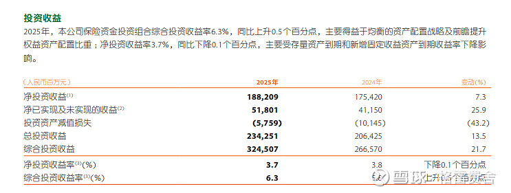 3、投资与盈利表现优异:2025年,平安投资组合规模6.49万亿元,综合投资收益率达6.3%,创近5年新高,超过内含价值长期回报假设。