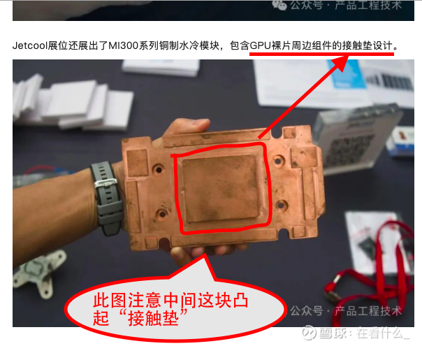 说明:这是JETCOOL展出的一块铜质水冷模块,注意中间的凸起的接触垫。