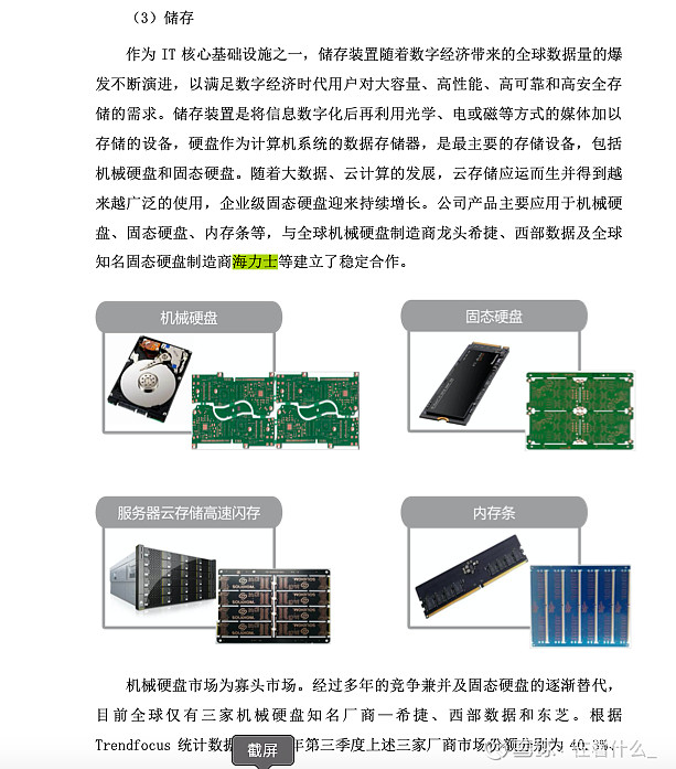 在储存领域,公司产品主要应用于机械硬盘、固态硬盘、内存条等,与全 球机械硬盘制造商龙头希捷、西部数据及全球知名固态硬盘制造商海力士等建立了稳定合作。