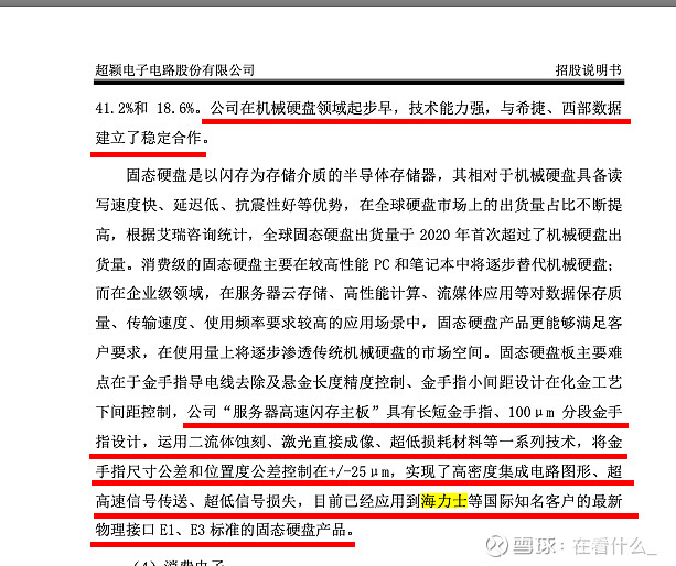 摘自超颖电子招股说明书:金手指导电线去除及悬金长度精度控制等技术,目前已经应用到海力士等国际知名客户的最新物理接口 E1、E3 标准的固态硬盘产品。