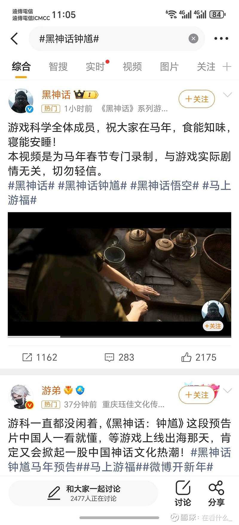 游戏科学“黑神话”官微,放出【黑神话 钟馗】马年预告视频,