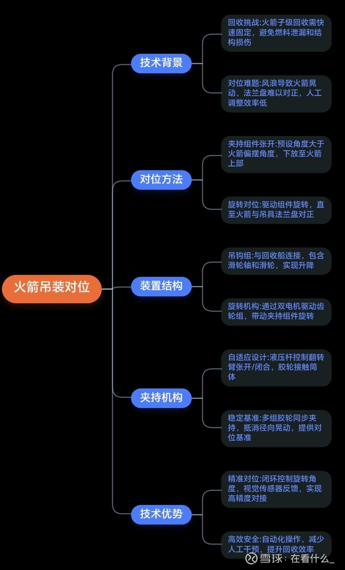 在海面有涌浪时,竖立的火箭子级(高约40米、重数吨)会持续横向摆动,人工对准法兰螺栓孔极其危险且低效。该装置通过: