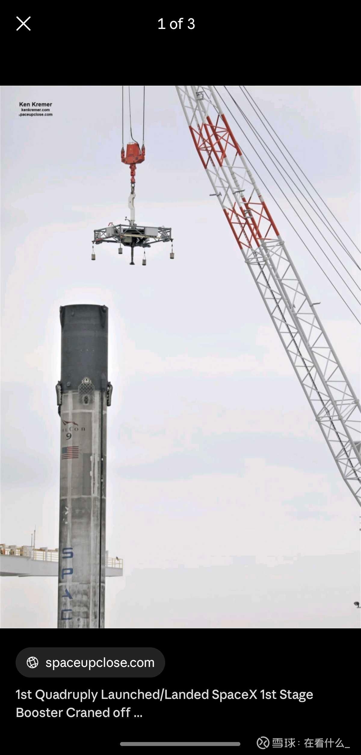 ② 吊运:SpaceX到港后用大型起重机将子级吊钩通过预设接口连接,需要人工辅助对位。