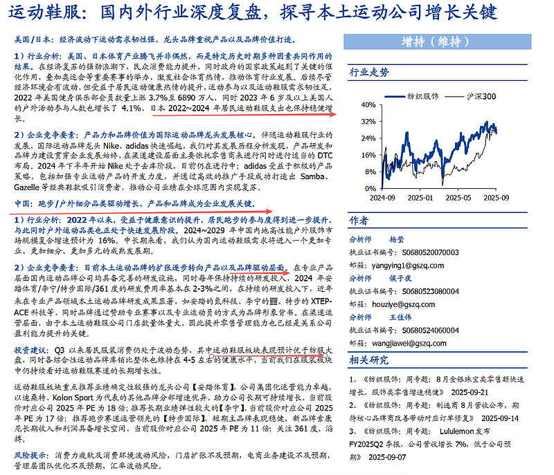 2.我国自2022 年以来居民健康意识提升,跑步、户外细分品类高增长,2024 - 2029 年国内高性能户外服饰市场年复合增速预计达 16%,行业进入专业化、成熟化阶段;本土运动品牌已具备完善研发设施与持续投入能力,在专业产品领域成果显著,同时需通过签约专业赛事 / 运动员强化品牌背书。