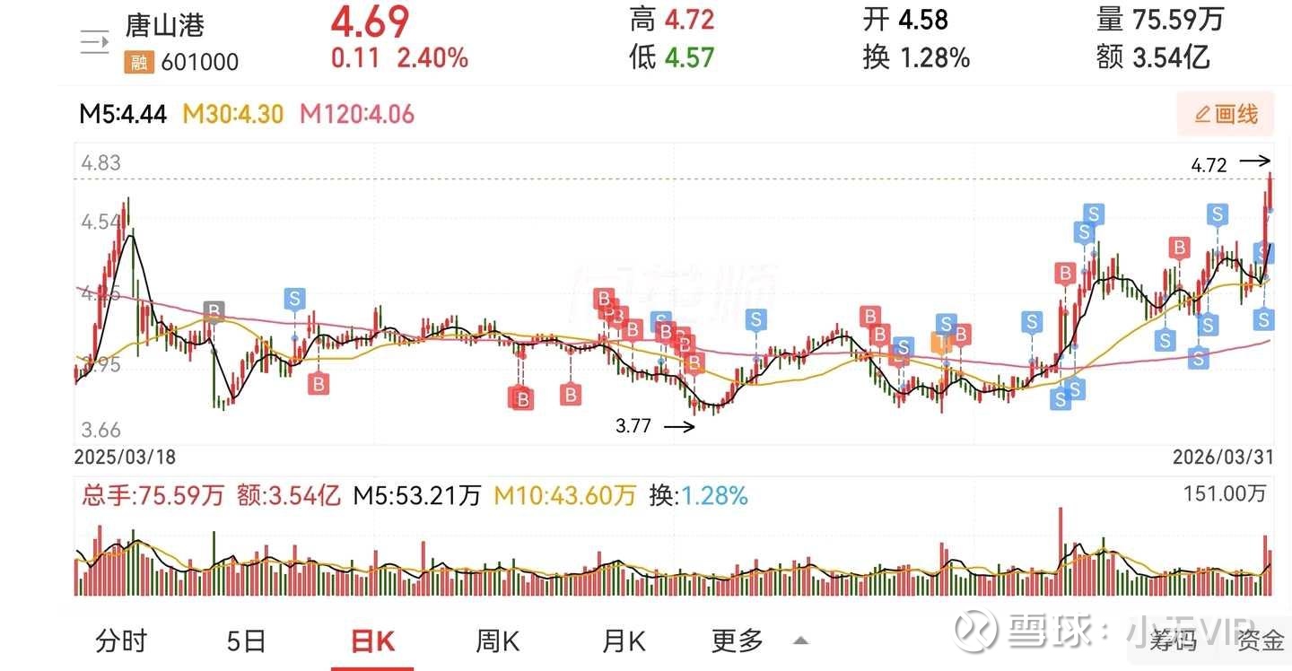 2、唐山港:25年8月判断4元已经是底部,大规模买入,实际判断错误,最低跌到3.78元(最高亏损1w+)。此票的好处是公司负债低、利润无需再大规模投入生产,不用担心盈利降低会导致分红降低,适合长期持有。此票的坏处是比较温吞、操作周期长,操作一轮花了8个月,年化16%也算不得优秀。计划4.2元以下再重新开始买入。