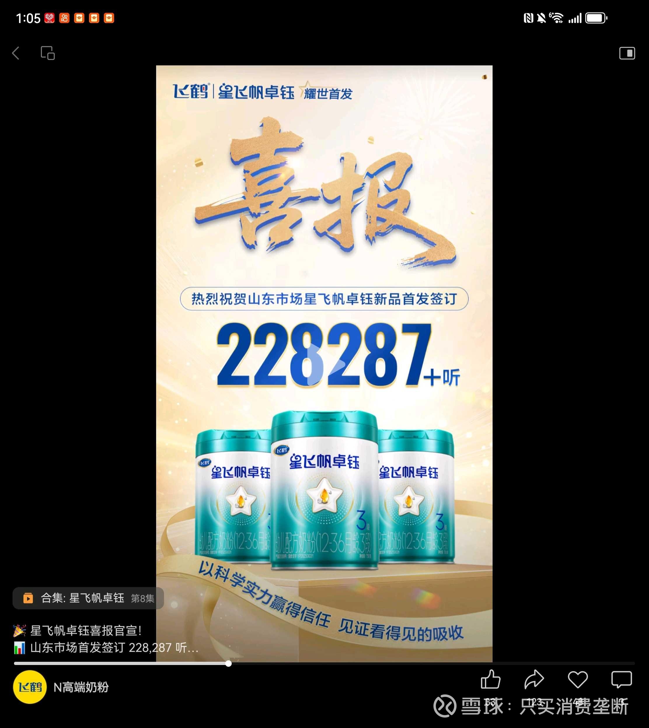星飞帆卓钰22万听订单落地:飞鹤超高端新品铺货开启业绩反转周期