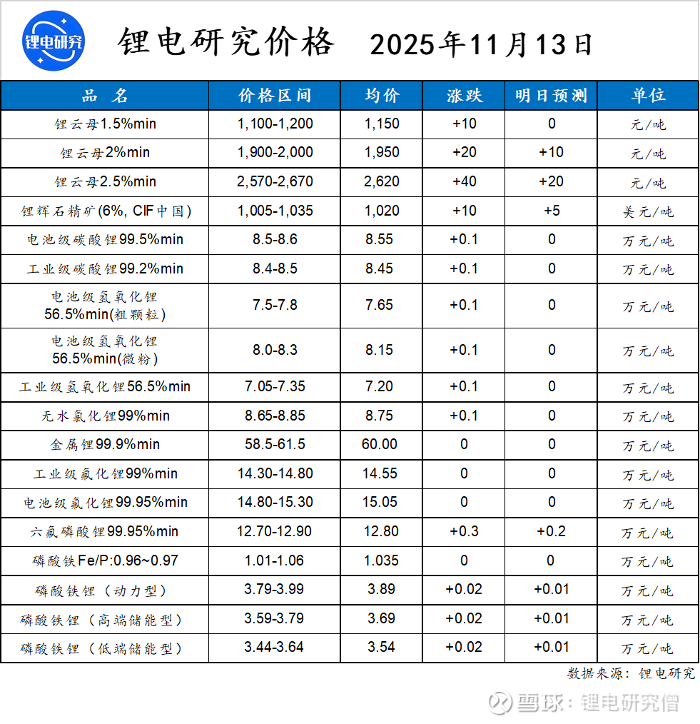 #碳酸锂价格指数# $华盛锂电(SH688353)$ $天力锂能(SZ301152)$ $大中矿业(SZ001203)$