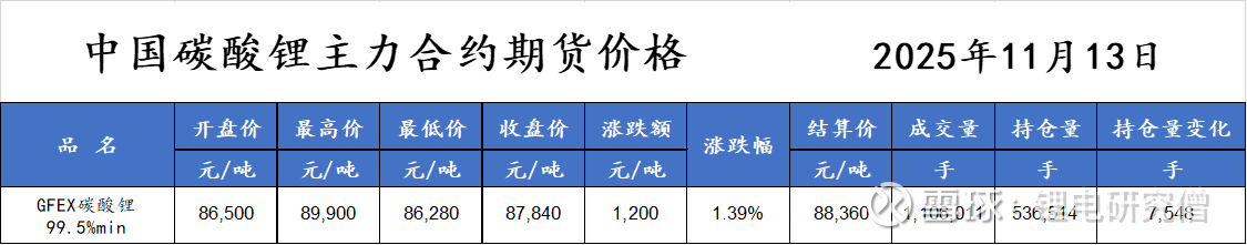 注:2025年10月20日开始,碳酸锂99.5%min主力合约从LC2511变更为LC2601