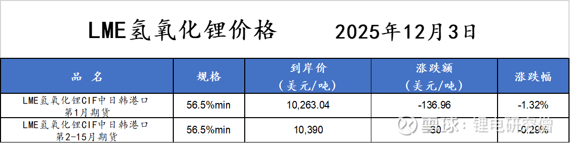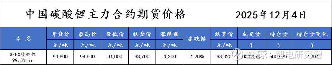 注:2025年11月26日开始,碳酸锂99.5%min主力合约从LC2601变更为LC2605