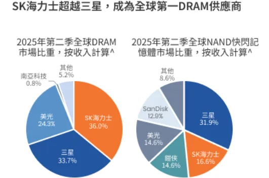 AI产业要大发展,链上有很多重要的配套环节,电力是其中之一,而存储,也必不可少。作为作为全球面向AI存储领域的先驱者之一,SK海力士在高带宽存储器(HBM)和企业级固态硬盘(eSSD)方面展现出卓越的领导地位,已成为一家全方位面向AI的存储器供应商。在当前的AI热潮中,属于实打实,具备良好业绩和前景的公司。2024年全球半导体排名第四,也是韩国第二大市值公司;在2025年第二季,SK海力士首次超越三星,成為全球銷量最高的記憶體製造商。