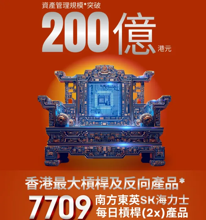 截至2026年3月11日,南方东英SK海力士每日杠杆(2x)产品(07709)的资产管理规模突破200亿港元,新晋成为香港最大杠杆及反向产品(杠反产品),亦是亚洲最大的个股杠杆及反向产品*。