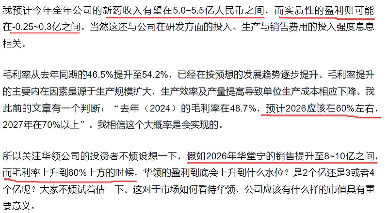 公司于3月2号发布公告,华堂宁在港获批上市。目前,华领正与相关合作方讨论香港市场的定价策略与商业化路径公司计划2026年中正式在香港市场推出该产品。我个人预计,华堂宁在香港的售价应该比内地要高,而且会高出相当的比例。香港市场的毛利率预计会更高,推动盈利进一步提升。